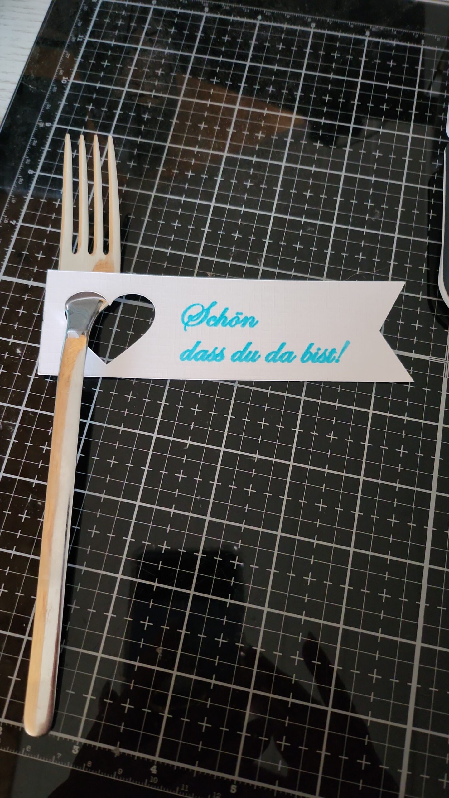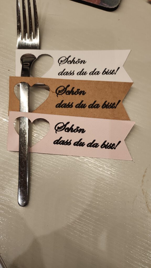 Meine Schwiegertochter hatte gefragt, ob ich Platzkärtchen, bzw. einen Willkommensgruß plottern könnte. Sie hatte bereits eine feste Vorstellung und es lag nun an mir, dass nach Ihren Wünschen umzusetzen.