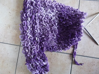 Angestrickt habe ich den Shrug mit Schlaufengarn, was bestimmt viele noch von Euch kennen! Dies gab es letztes Jahr bei A..i im Frühjahrssortiment (?), wenn ich mich recht entsinne! Da mir aber Schals zu langweilig sind, und mir der Schlaufen-Shrug, den ich für meine Tochter (naja eigentlich sollte er für mich sein!) genadelt habe, recht gut gefällt, möchte ich ja nun auch mal einen haben!