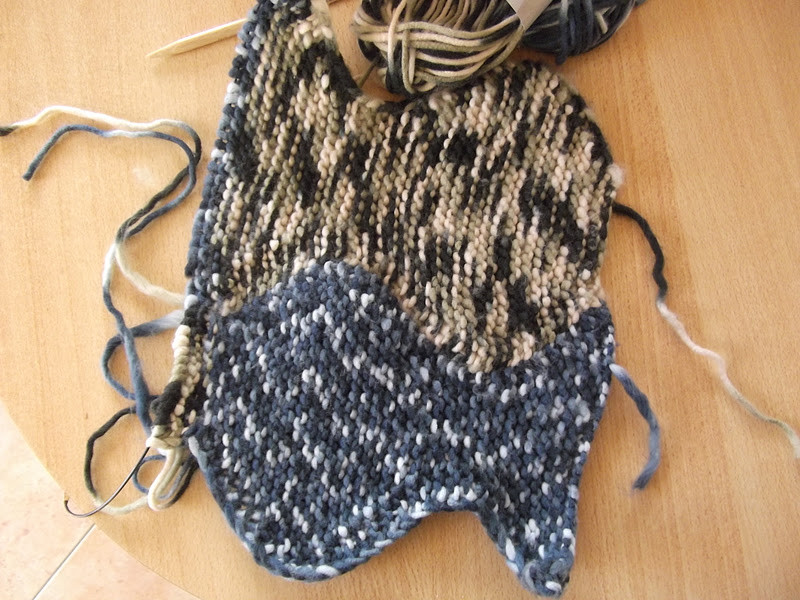 Den ersten Abschnitt der Tasche habe ich geschafft! Gestrickt habe ich in glatt rechts ohne Muster wie es in der Anleitung beschrieben steht! Dafür ist die Wolle einfach zu dick! Aber Augen bekommen die Fische schon noch! :o)