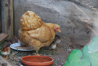 Insgesamt haben wir 5 normale Hühner und 3 Zwerghühner. Dazu kommen jetzt noch die 6 kleinen Küken!