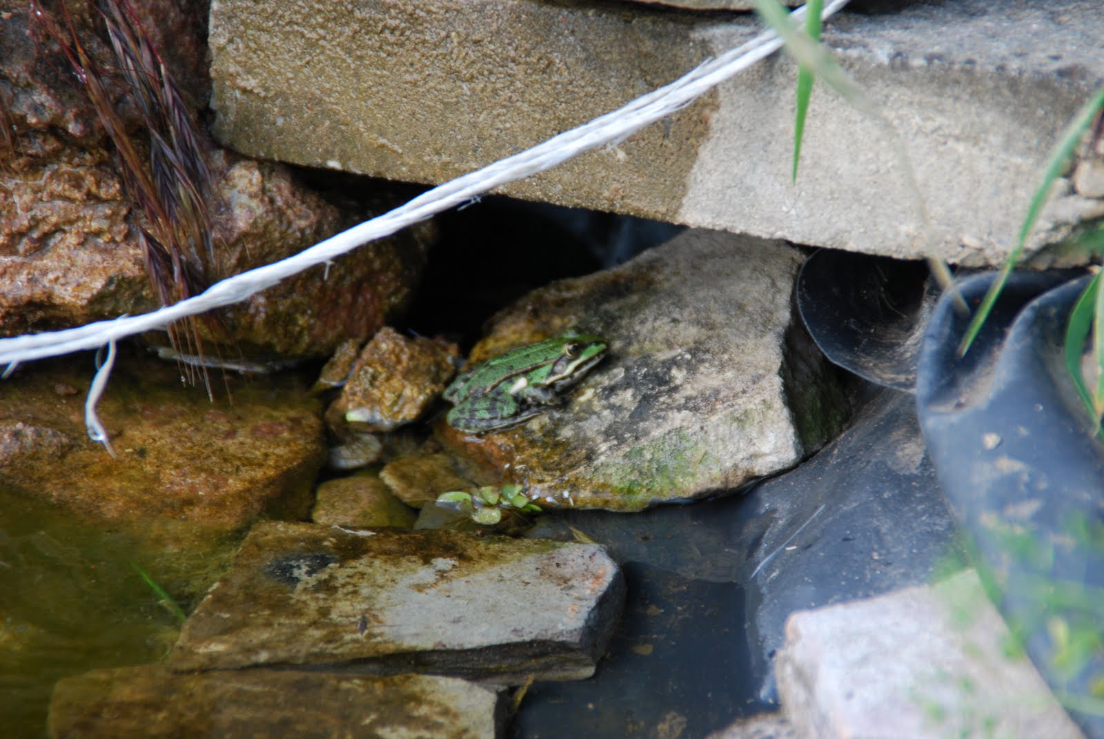 Ein Frosch der dieses Jahr in unserem Teich überlebt hat! Denn unsere Fische haben sich an den Froschlaich schwer zu schaffen gemacht!