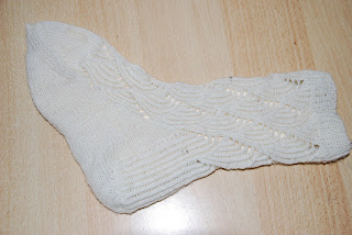 Aber so wirklich bin ich mit dem Ergebnis nicht zufrieden! 🙁 Das Muster finde ich nach wie vor einfach nur Klasse, aber die Socke sieht total ausgeleiert aus…Ich glaube ich werde die Socke nochmal aufribbeln und mit einer anderen Nadelstärke stricken!