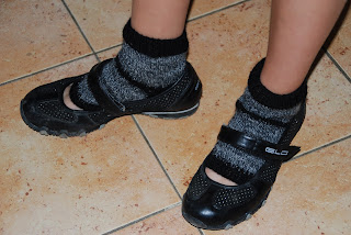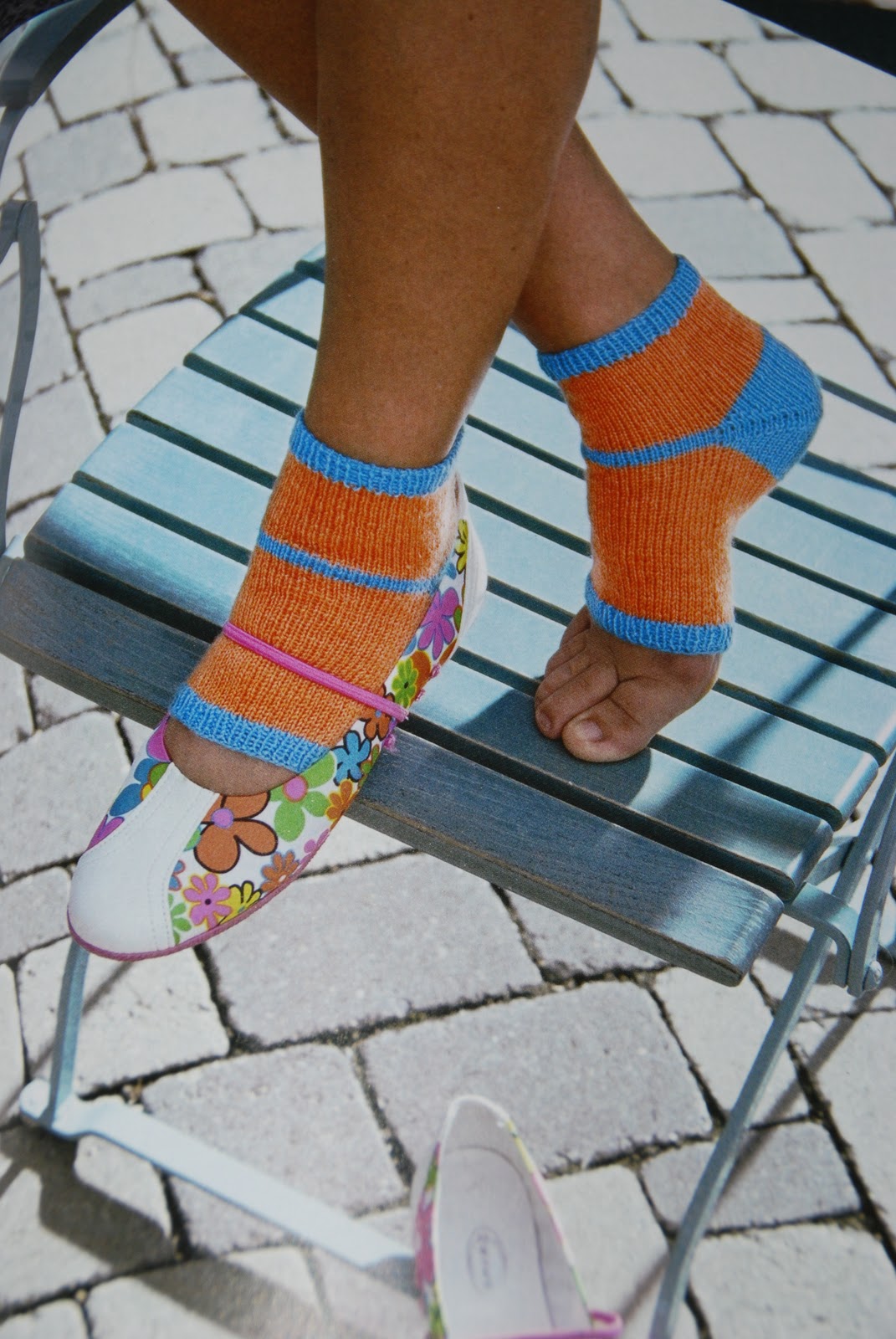 Für meine Tochter Ihre Ballerina-Schuhe habe ich ein paar Söckchen ohne Spitze gestrickt! Das Muster ist aus dem Buch: Strickzeit – Socken selber stricken.