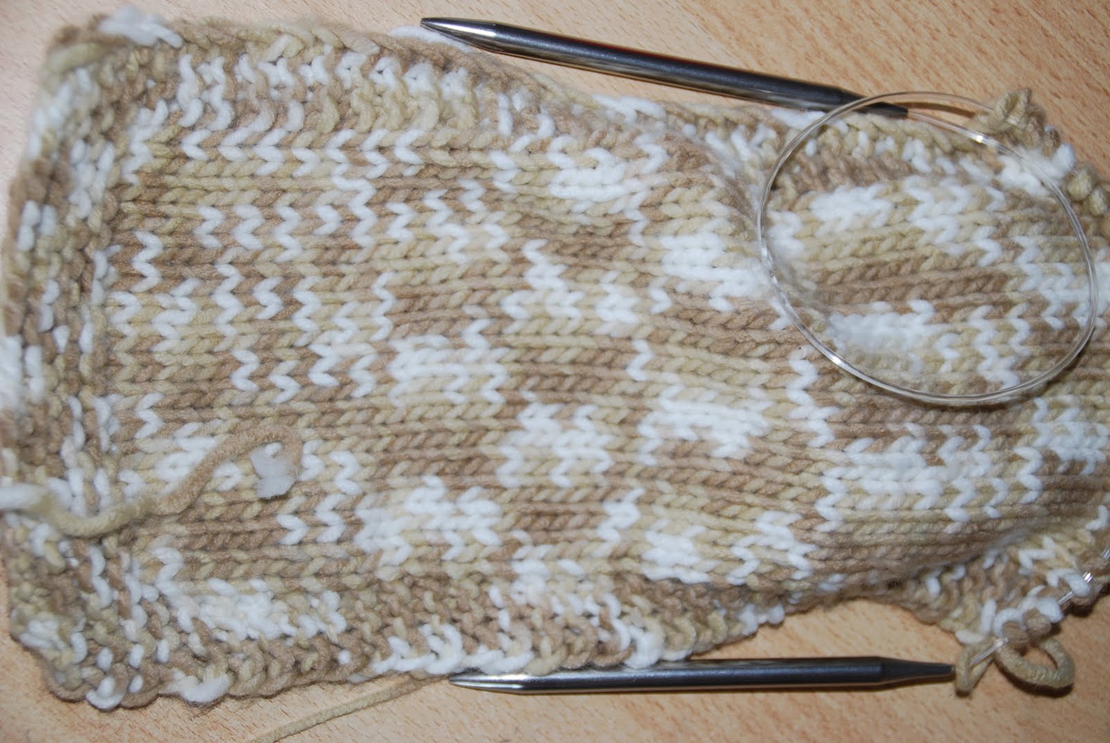 Er hat sich dann für die Wolle Christin entschieden. Die Wolle habe ich bei einer Lebensmittelkette 🙂 gekauft. Diese ist im 4er Pack incl. Rundstricknadel Stärke 8,0 mm. In der Packung war eine Anleitung enthalten, die ich dann auch kurzerhand übernommen habe!