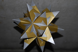 Hier mein Stern in besonderer Falttechnik ohne zu kleben: