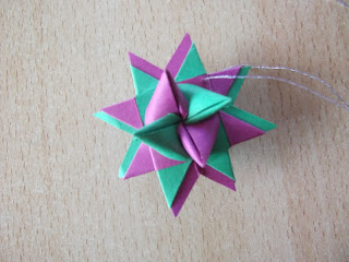 Zu Weihnacht gab es bei einem Lebensmitteldiscounter ein Stern zum selber falten! Mit allem was man (frau) dazu braucht um einen Stern zu falten! Die Anleitung sowie die benötigten Blätter waren im Paket enthalten! Ich habe dann mal gleich den Großen angefangen...(pssst der hängt heute noch! *schäm)
