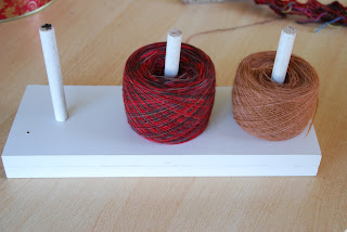 Ein Halter für meine selbst gewickelte Wolle musste her. Also habe ich mir erstmal eine Variante gebastelt: die 3er Version hat übrigens mein Mann für mich gebastelt!